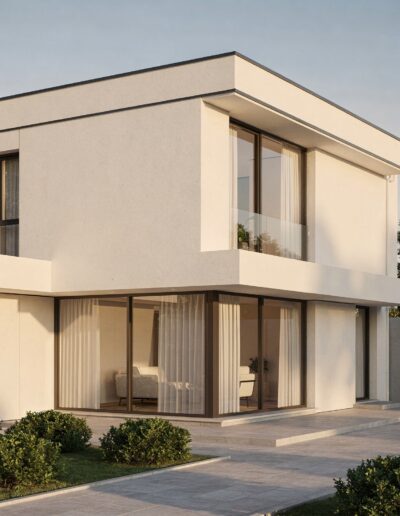 • Teplé neutrálne farby ako khaki, pieskové tóny či zemité odtiene vytvárajú nadčasový dizajn fasád.